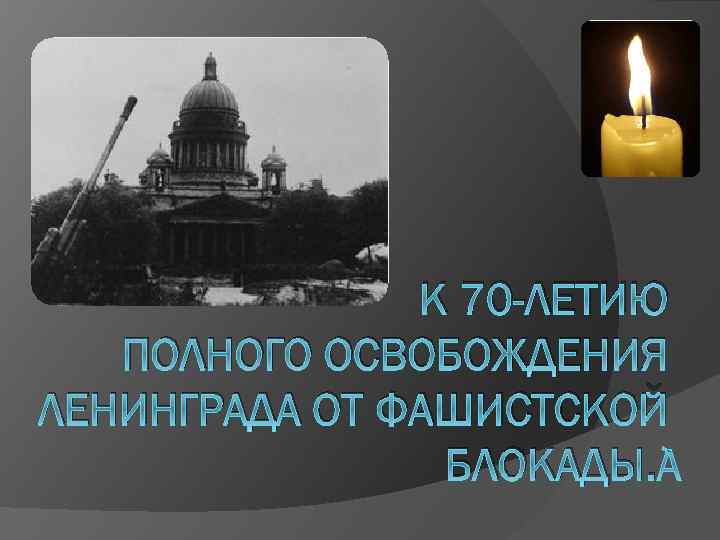 К 70 -ЛЕТИЮ ПОЛНОГО ОСВОБОЖДЕНИЯ ЛЕНИНГРАДА ОТ ФАШИСТСКОЙ БЛОКАДЫ.