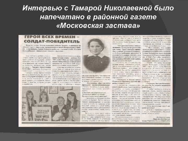 Интервью с Тамарой Николаевной было напечатано в районной газете «Московская застава»