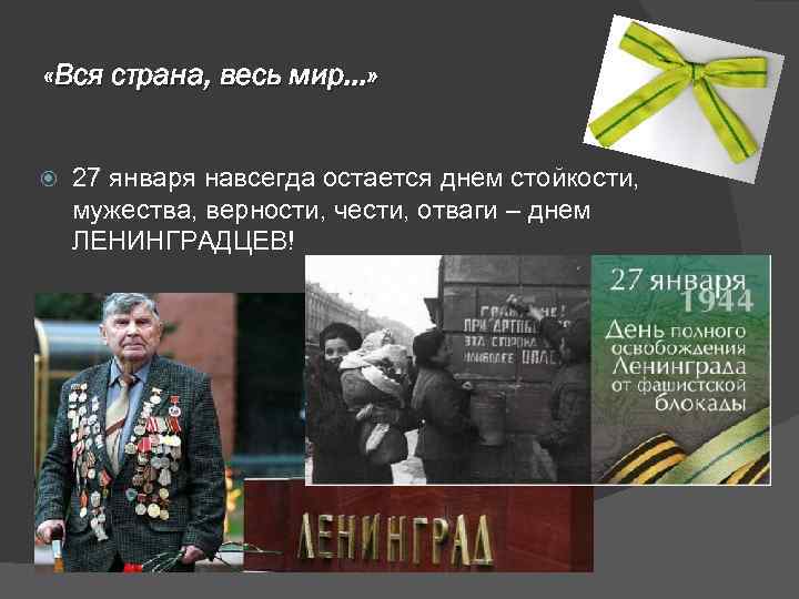 «Вся страна, весь мир…» 27 января навсегда остается днем стойкости, мужества, верности, чести, отваги – днем ЛЕНИНГРАДЦЕВ!