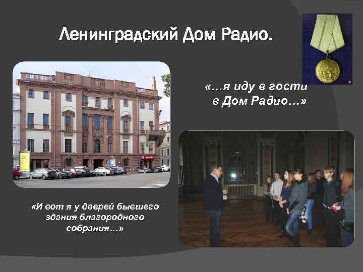 Ленинградский Дом Радио. «…я иду в гости в Дом Радио…» «И вот я у дверей бывшего здания благородного собрания…»