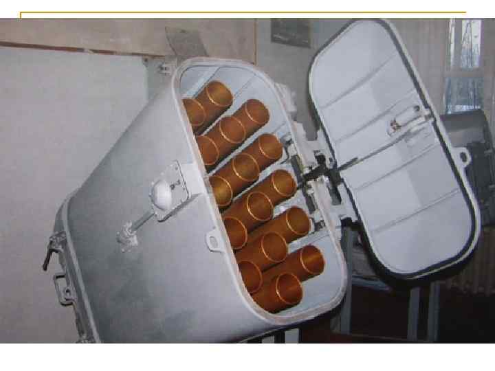 82 -мм корабельный комплекс выстреливаемых помех ПК-16 Предназначен для постановки радиолокационных и оптико-электронных отвлекающих ложных целей для противодействия управляемому оружию с радиолокационными и оптико-электронными системами наведения. В состав комплекса входят: - две 82 -мм пакетные пусковые установки (ПУ) ПК-16; - пульт управления; выпрямительное устройство. Комплекс размещается на надводных кораблях малого и среднего водоизмещения проектов 206 МР, 1135 М, 61 М, 1241, 1124 и др. Основные характеристики: Калибр ПУ, мм 82 Количество направляющих ПУ, шт. 16 Режимы стрельбы: ручной одиночными выстрелами автоматический: одиночными выстрелами с интервалом, с от 20 до 100 дискретно через 10 с очередями с темпом, выстр. /с 1 -2 интервал между очередями, с от 20 до 100 Количество снарядов в очереди, шт. 2 -3 Заряжание ручное Дальность постановки ложных целей, м от 200 до 1800