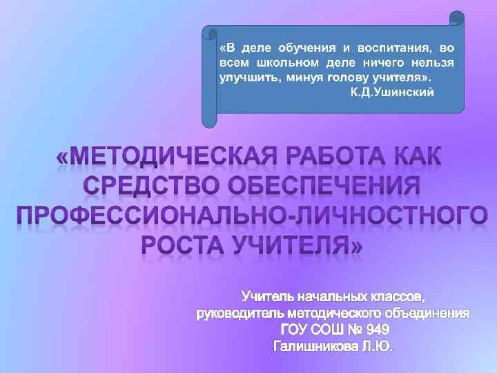 Самообразование Методическая работа «Наивысший, наибольший эффект в профессиональном росте учителя может быть достигнут только в том случае, когда личные усилия учителя по своему самообразованию начинают совпадать с усилиями внешних организаторов методической работы» Ю. К. Бабанский