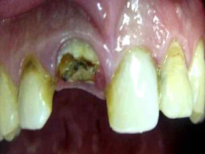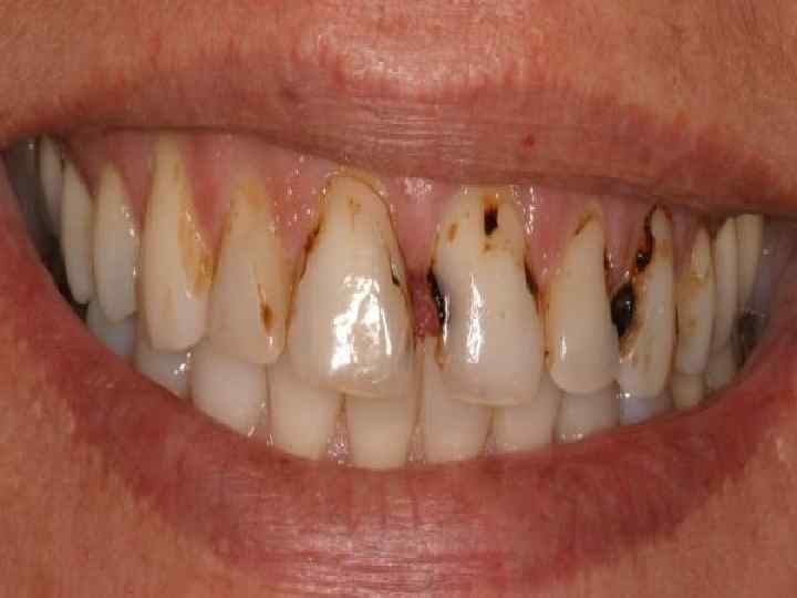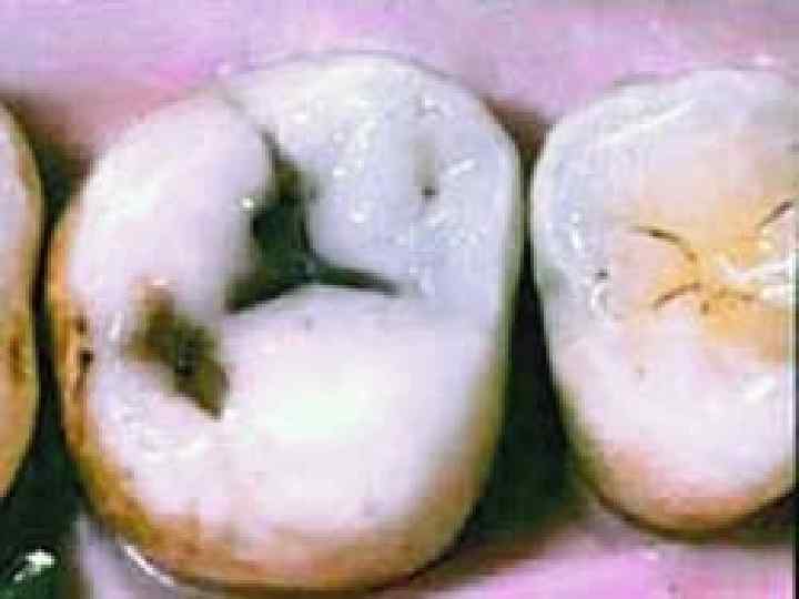 Профилактика кариеса • • Верный путь избежания кариеса зубов – это своевременная и правильная гигиена полости рта. Применяйте фторсодержащие и кальцийсодержащие зубные пасты. Фтор снаружи защищает зубы, а кальций – изнутри. Если нет возможности почистить после еды зубы – пожуйте жевательную резинку без сахара, которая соберет остатки пищи, застрявшие в зубах, и уничтожит кариозные бактерии, нормализуя кислотность слюны. Эффективно чистить зубы можно деревянной зубочисткой. Круговыми движениями зубочистки вокруг каждого зуба можно очистить от микробов эмаль. Пользуйтесь качественными зубочистками – в середине имеющими квадратное сечение, а на концах – круглые. Слюна является естественным врагом кариеса. Нужно стимулировать слюноотделение, выпив немного воды, например, или пожевав листик мяты или петрушки, гвоздику или семя фенхеля. Нежирный сыр, съеденный после сладостей, стимулирует образование слюны, предохраняет от разрушения зубную эмаль и нейтрализует кислоту. Яблоко или любой другой фрукт или овощ замедляет процесс разрушения зубов, производя очищающий эффект, соскабливая зубные камни и часть бактерий. Жгучий перец вызывает слюноотделение, очищающее эмаль и нейтрализующее разрушающие её кислоты. • Далее фото не для слабонервных