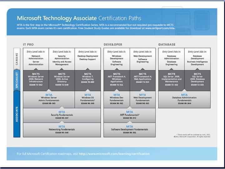 Microsoft Certification Family Microsoft Certified ARCHITECT Microsoft Certified MASTER Microsoft Certified IT PROFESSIONAL / PROFESSIONAL DEVELOPER Microsoft Certified TECHNOLOGY SPECIALIST Microsoft Technology ASSOCIATE IT Certifications Microsoft Office Specialist MASTER Microsoft Office Specialist EXPERT Microsoft Office SPECIALIST MOS Certifications