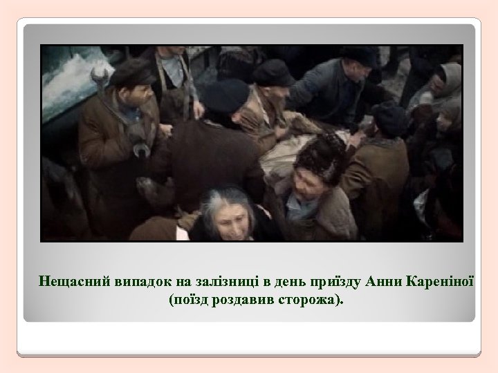 Нещасний випадок на залізниці в день приїзду Анни Кареніної (поїзд роздавив сторожа).