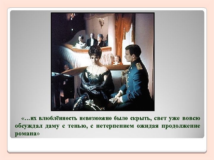 «…их влюблённость невозможно было скрыть, свет уже вовсю обсуждал даму с тенью, с нетерпением ожидая продолжение романа»