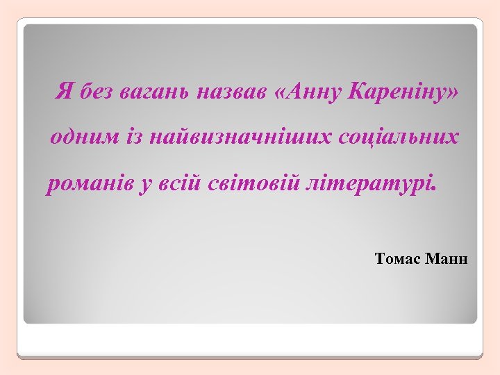 Я без вагань назвав «Анну Кареніну» одним із найвизначніших соціальних романів у всій світовій літературі. Томас Манн