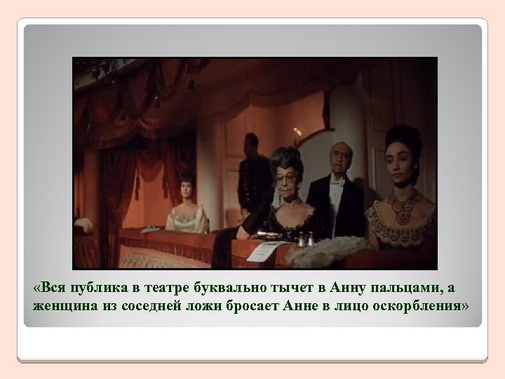 «Вся публика в театре буквально тычет в Анну пальцами, а женщина из соседней ложи бросает Анне в лицо оскорбления»