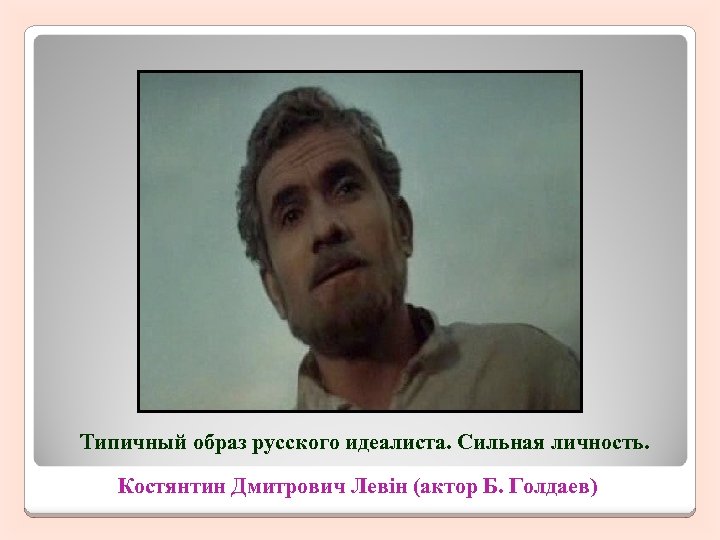 Типичный образ русского идеалиста. Сильная личность. Костянтин Дмитрович Левін (актор Б. Голдаев)