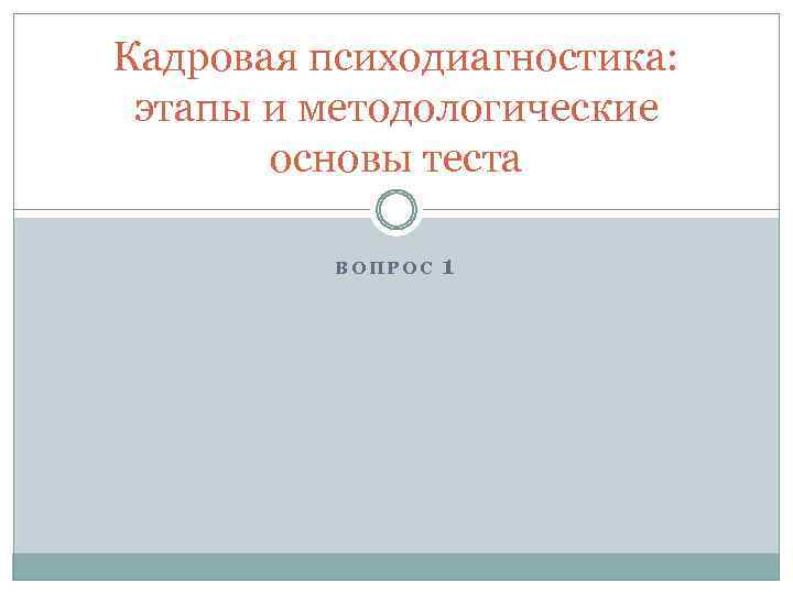 Кадровая психодиагностика: этапы и методологические основы теста ВОПРОС 1