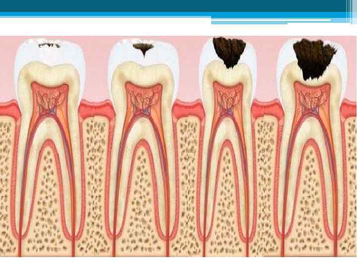 • Средняя форма кариеса – кариес распространяется за пределы эмали и поражает верхние слои дентина. .