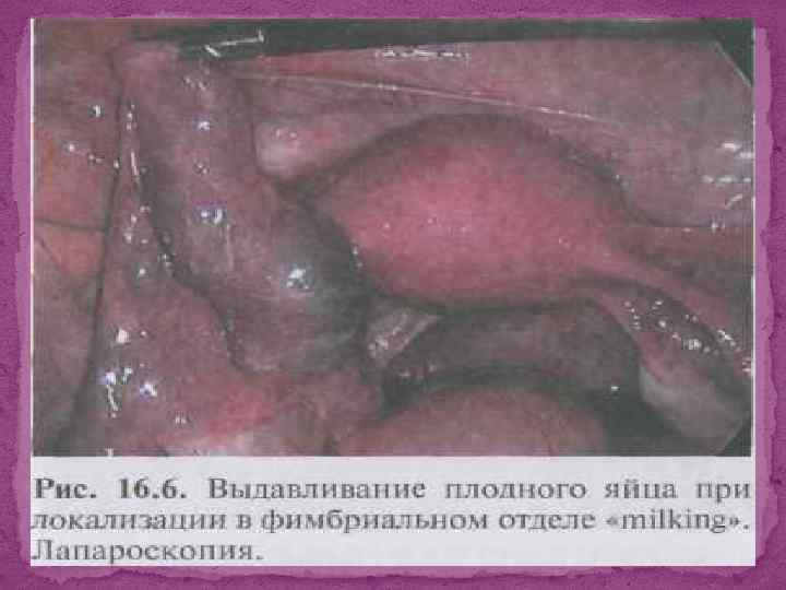 Искусственный трубный аборт Выдавливание плодного яйца через брюшное отверстие маточной трубы. Это достаточно простая манипуляция, которая, однако, сопровождается большим количеством осложнений. Риск рецидива внематочной беременности вдвое выше, чем после других операций по поводу трубной беременности. Большинство авторов не рекомендуют использовать этот метод, хотя существуют данные о том, что частота нормальной беременности после искусственного трубного аборта достигает 92%. К. Мак-Интайр-Зельтман, Л. Эндрюс-Дитрих