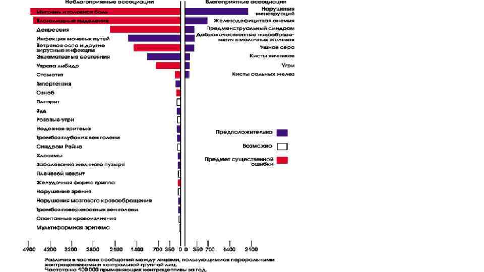 Перед назначением КОК пациентка также должна быть проинформирована и о таких возможных побочных эффектах • кожная сыпь, нерегулярные маточные кровотечения, головная боль, тошнота, нагрубание молочных желез, увеличение массы тела, изменение настроения, снижение либидо. • Они встречаются преимущественно в первые 3 мес приема контрацептивов у 20– 30% женщин и обычно самостоятельно проходят после этого периода, не требуя дополнительных врачебных манипуляций