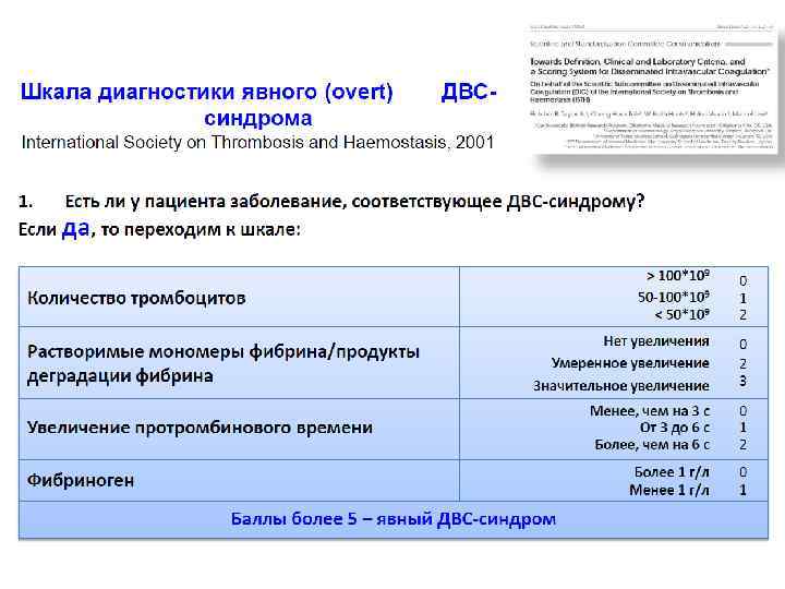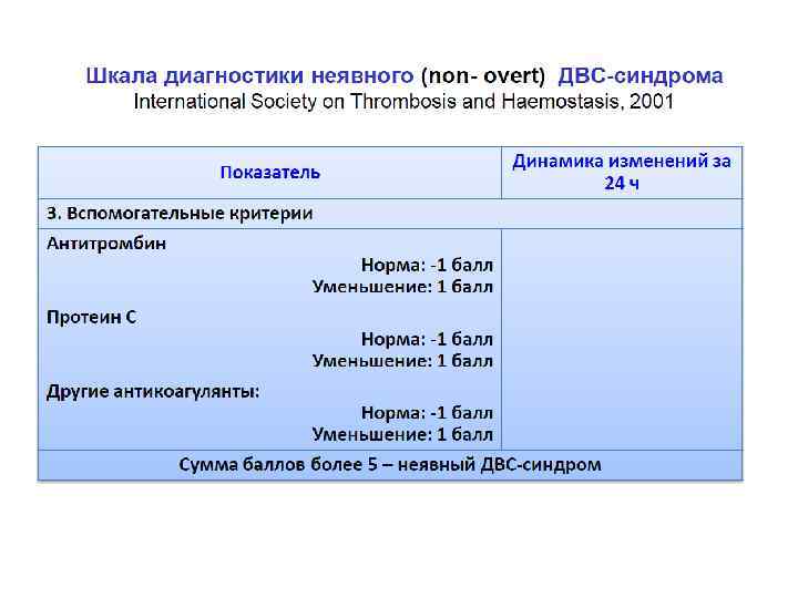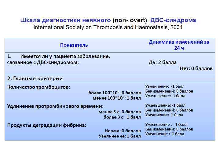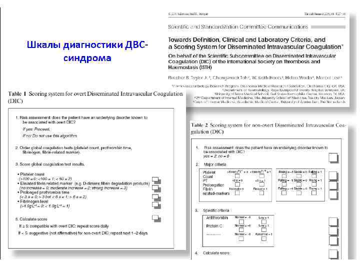 Шкалы диагностики ДВС-синдрома