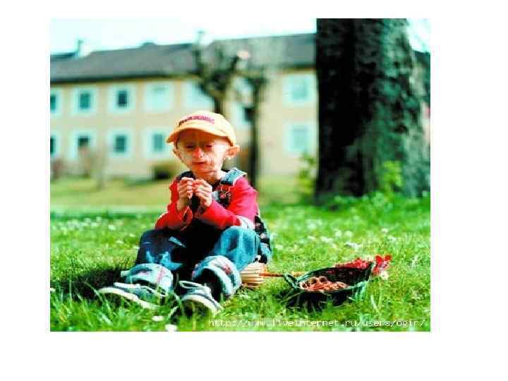 ? ? ? Прогерия • У больных прогерией может появиться второй ряд зубов, кожа становится очень бледной, почти прозрачной. Такие дети заболевают тем, чем обычные люди страдают в пожилом возрасте. Оури Барнетт родился 16 апреля 1996 года.