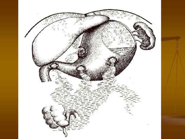 Осложнения пенетрирующих язв Пенетрирующие язвы 12 -перстной кишки или пилорической области часто приводят к массивным кровотечениям ввиду близости панкреато-дуоденальной артерии и возможности её аррозии. Эти язвы нередко обуславливают развитие хронического панкреатита. Пенетрация язв может привести к возникновению свищей – холедоходуоденальных (при пенетрации язвы 12 -перстной кишки в печеночно-дуоденальную свзку), желудочнотолстокишечных (при пенетрации язвы желудка в поперечную ободочную кишку) и т. д. Холедоходуоденальные соустья сопровождаются тяжелыми холангитами и холециститами, желудочно-толстокишечные свищи – зловонной отрыжкой, поносами, резким исхуданием больных и пр.