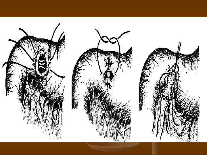 Диагноз прободения – абсолютное показание к срочной операции. Наиболее распространенное вмешательство ушивание прободной язвы двухрядным швом, при сомнениях в герметичности – подшив. сальника. Показания к резекции желудка при прободной язве. Подозрение или данные за малигнизацию язвы. Сочетание прободения с другими осложнениями – кровотечением, стенозом. Случаи, когда ушивание прободной язвы неминуемо приведет к сужению 12 перстной кишки с последующим нарушением эвакуации из желудка. Повторные перфорации. При перфоративной язве 12 -перстной кишки некоторые хирурги применяют иссечение язвы, пилоропластику и ваготомию. Консервативное лечение – в исключительных случаях, когда выполнить срочную операцию невозможно (при отсутствии хирурга, в полевых условиях). Аспирационный метод Тейлора – постоянное или периодическое (каждые 15 минут) отсасывание содержимого желудка, антибиотики широкого спектра, голод. Как только появляется возможность, больного оперируют.