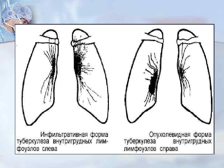 Ø Ø Ø Кіші түрлері: инфильтрация фазасында 1 -2 топ лимфа түйіндерінің айқын емес ұлғаюымен (өлшемі 0, 5 -1, 5 см) және аз ғана казеоздық түзіліспен ерекшеленеді. Инфильтратты түрі: жиі бір жақты, бір немесе бірнеше лимфа түйіндерінің кіші ұлғаюымен, көбіне инфильтратты және аймақтық арнайы емес қабынуымен сипатталады. Ісік тәрізді түрінде: бірнеше топ лимфа түйіндері зақымдалады, олар әдетте екі жақты орналасуымен болады, үлкен көлемге дейін жетіп, казеозға толады, бірақ үрдіс капсуладан тыс жайылмайды.