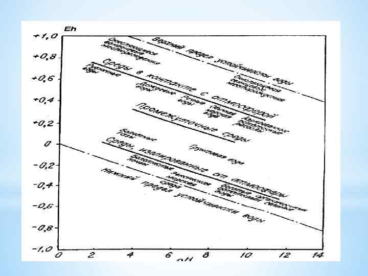 1. Окислительные реакции Кислород + серная кислота в подземных водах 2. Восстановительные реакции Главные восстановители: Fe 2+, водород и сероводород 3. Микробиальные реакции Хемосинтетики и гетеротрофы. Они могут быть как анаэробами, так и аэробами. Там где есть сера – тионовые бактерии. Они создают сильные окилители- сульфат-ион, углекислый газ и Fe 3 +. В сочетании с анаэробами создают сероводород – сильный восстановитель.