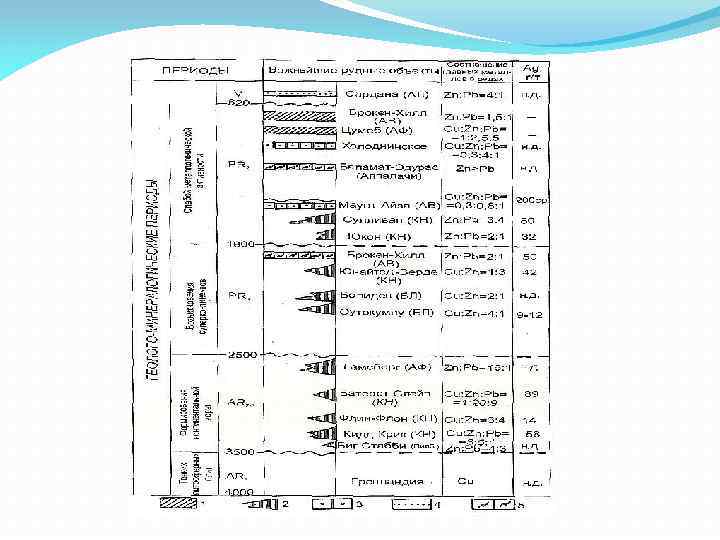 В течение четырех миллиардов лет возникло 30 % запасов свинца и цинка. Месторождения появились – (2, 5 -1, 8) млрд. лет, когда возникли первые континенты. Главный пик рудогенеза Pb и Zn в докембрии приходится на период – (1, 8 -0, 6) млрд. лет Для докембрия характерно присутствие в раннем археесреднем протерозое медно-цинково-колчеданных (с Au) месторождений рудогенез которых продолжался более 2, 0 млрд. лет В среднем протерозое-венде он сменился колчеданнополиметаллическим с преобладанием цинка и свинца (с Ag), причем Cu-Zn руды ассоциируют с вулканогенными формациями, а Pb-Zn – с карбонатно-черносланцевыми