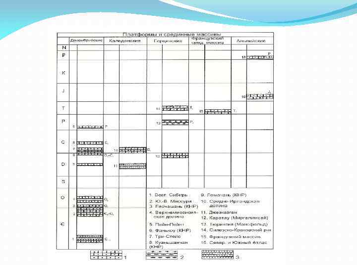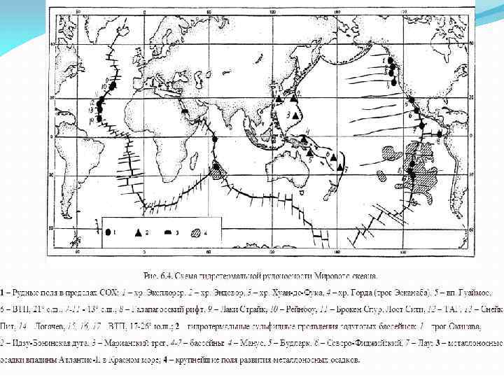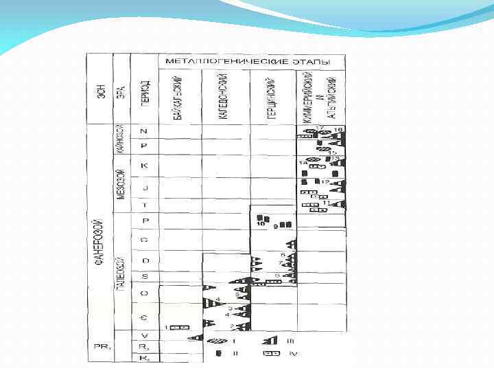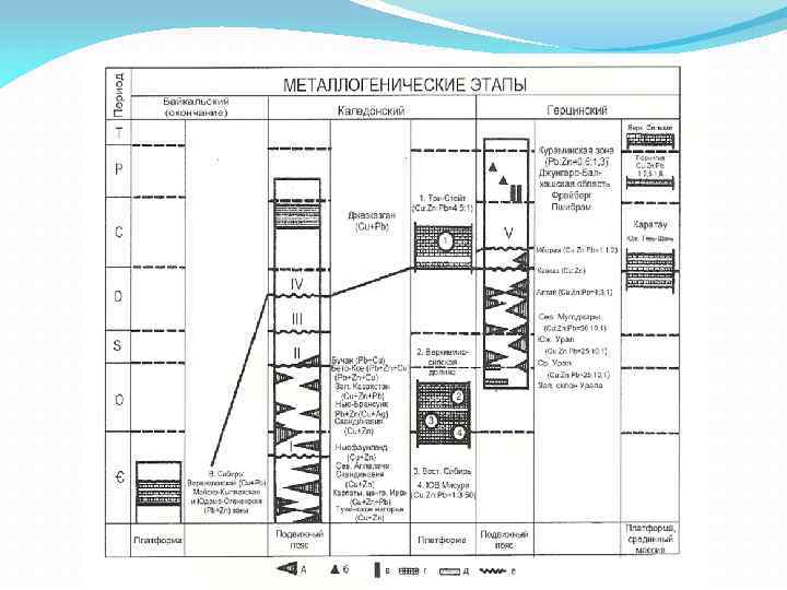 Эволюция медно-цинково-свинцового оруденения в фанерозое I – Скарновые II – Жильные III – В вулканогенных формациях IV − В карбонатно-терригенных Регионы : 1 – В. Сибирь (Pb, Zn) 2 – Карпаты, Иран (Cu, Pb, Zn) 3 – С. Аппалачи 5 – З. Казахстан (Cu, Pb, Zn) 6 – Ю. Урал (Cu: Pb: Zn = 25: 10: 1) 7 – С. Мугоджары (50: 1) 8 – Алтай (1: 3: 1) 9 – Рудные горы, Чешский массив 10 – Кураминская зона, З. Тянь. Шань (Zn: Pb=1. 35: 0. 6) 11 – Канада, Балканы 12 – В. Забайкалье(Zn: Pb=1 -1. 5: 1 -10) 13 – Дальнегорское (Cu> Zn Pb) 14 – Босния и Герцоговина 15 – Ц. Тинтик (Zn: Pb = 4: 5) 16 – Филиппины, Япония(Cu: Pb: Zn = 2: 4: 1) 17 – Колорадо (Zn: Pb=6: 1+Ag), Мексика (Zn: Pb=2: 1+Ag)
