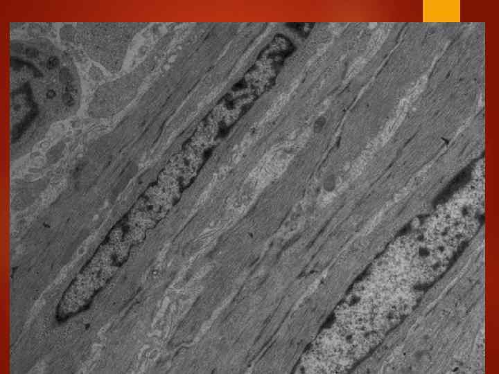 Ультраструктура ГМК Крупное ядро. Ядрышки. Ядерные поры. Мембрана – рецепторы, кавеолы, контакты. г. ЭПС; а. ЭПС, полисомы, пластинчатый комплекс. Митохондрии Цитоскелет и связанный с ним сократительный аппарат
