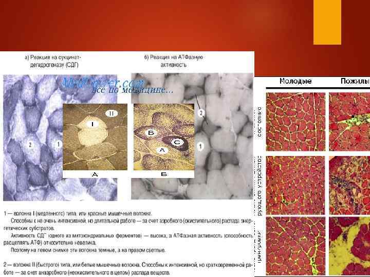 Гистогенетическая классификация (Н. Г. Хлопина) 1. Мускулатура соматического типа – миотомы сомитов мезодермы 2. Миокард – целомическая выстилка вторичной полости тела (мезодерма) 3. Гладкая мускулатура мезенхимного типа – энтомезенхима (мезодерма) 4. Мионейральные элементы – нейроэктодерма (радужка м. суживающая и м. расширяющая зрачок) 5. Миоэпидермальные элементы – кожная эктодерма и прехордальная пластинка (миоэпителиальные клетки)