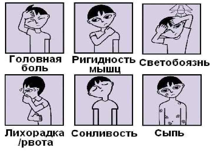 n n n Головная боль сильная, мучительна, диффузная. Усиливается при перемене положения тела, резком звуке, ярком свете. Рвота без предшествующей тошноты вне связи с пищей, не приносит облегчения больному. Она обильная, «фонтаном» , повторная и появляется иногда на высоте условной боли. Часто резкая кожная гиперестезия и повышение чувствительности к слуховым (гиперакузия), световым (фотофобия), болевым (гипералгезия) раздражителям, запахам (гиперосмия).