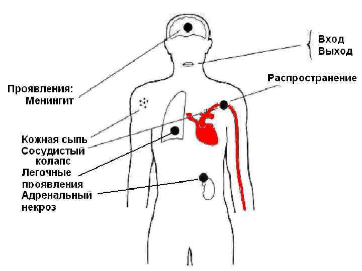 Генерализованные формы: Менингококцемия 5 -10% от всех форм. n Менингококцемия — менингококковый сепсис, протекающий бурно, с выраженными симптомами токсикоза и развитием вторичных метастатических очагов менингококковой инфекции. n Развивается на фоне полного здоровья или менингококкового назофарингита. n
