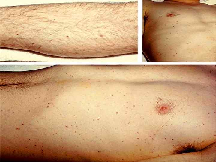Хроническая менингококцемия n n Редчайшая форма менингококковой инфекции. Продолжительность заболевания различна: от нескольких недель до нескольких лет (25 лет). Лихорадка обычно интермиттирующая, но встречается и постоянная; сопровождается полиморфной экссудативной эритемой. В ремиссию температура тела нормальная, сыпь бледнеет и даже исчезает, самочувствие улучшается.