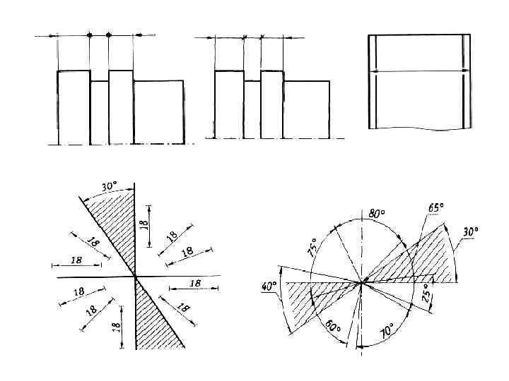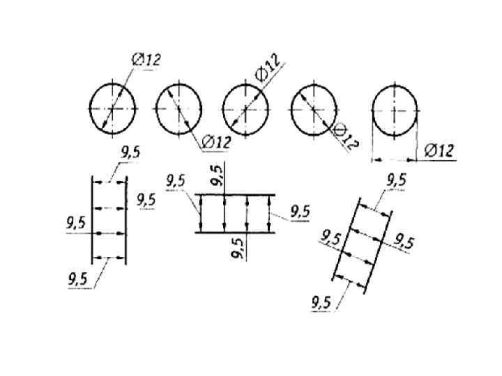 Простановка размеров • Простановка размеров фасок: • угловых, • в отверстиях.