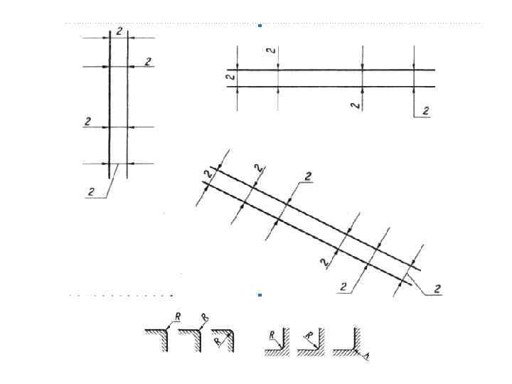 Расстояние м. у сплошной и тонкой линиями 0, 8 и не больше шага резьбы