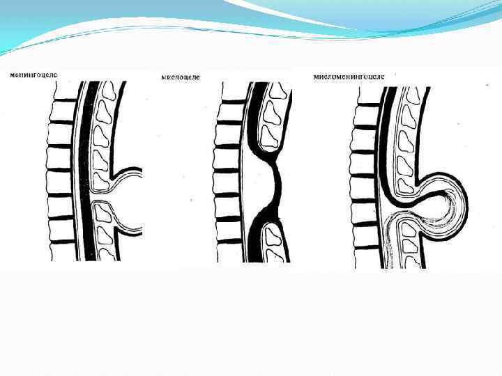 Аномалии развития спинного мозга Неправильное закрытие нервной трубки у эмбриона во время первого триместра беременности приводит к различным порокам спинного мозга. Обычно такие дефекты имеют место в пояснично-крестцовом отделе спинного мозга, но они случаются и в шейном, грудном и крестцовом отделах. Скрытая расщелина позвоночника — самый распространенный и наименее тяжелый порок спинного мозга. Хотя один или более позвонков оказываются не полностью сомкнутыми, спинной мозг и его оболочки не выпячиваются в пространство между несросшимися позвонками.
