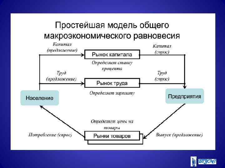 • Это кругооборот продукта, расходов и доходов в двухсекторной модели экономики с финансовым рынком. • Домохозяйства действуют рационально, поэтому тратят на потребление не весь свой доход, полученный от продажи экономических ресурсов. Часть дохода они сберегают, при этом сбережения должны приносить доход. Фирмы же испытывают потребность в доп. средствах для расширения производства, так как всю выручку от продаж они выплачивают домохозяйствам в виде факторных доходов.