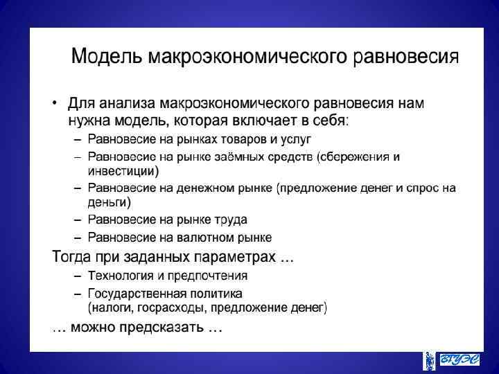 • В соответствии с кейнсианской моделью наиболее важным фактором инвестиций является настроение и ожидания инвесторов. • В краткосрочном периоде объем выпуска определяется главным образом величиной совокупных расходов.
