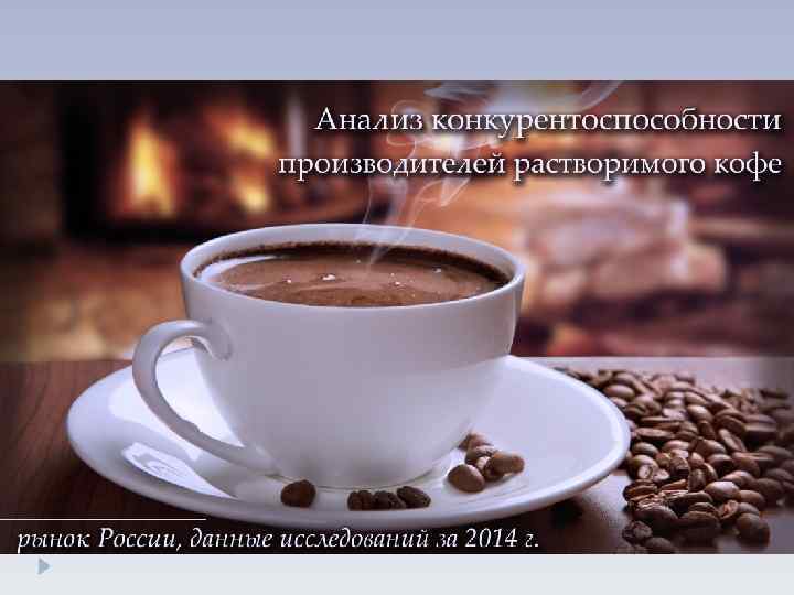 Распределение долей Российского рынка растворимого кофе Производитель Nestle Russia Kraft Foods Russia ( «Монделис Русь» ) Tchibo Orimi Trade Прочие производители Доля рынка, % 40 25 8 1 26