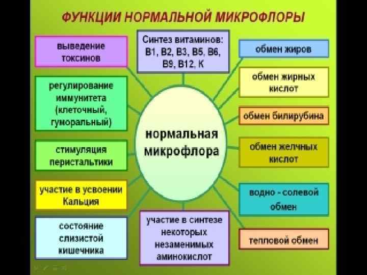 ОСНОВНЫЕ ФУНКЦИИ МФ • Обеспечение колонизационной резистентности • Иммуногенная • Участие в обменных процессах • Участие в биохимических процессах • Инактивация экзогенных и эндогенных токсических продуктов