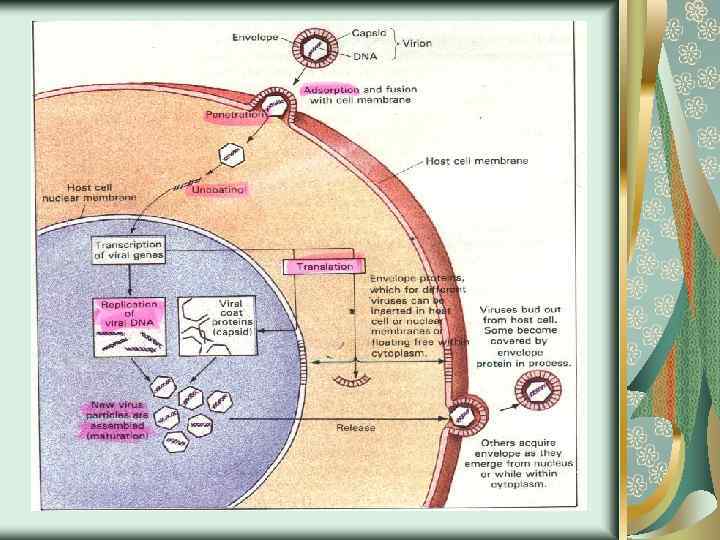 Главное свойство вируса предоставить свой геном в клетке-хозяине, для того, чтобы состоялась его экспрессия (трансляция и транскрипция)