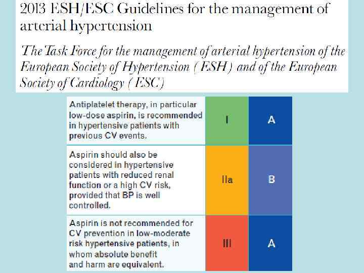 Выводы 1. Кому надо аспирин? • • Перенесенный ИИ, ТИА Сахарный диабет (тип 1 или 2) Средняя и тяжелая степень ХБП (СКФ < 60 мл/мин/1, 73 м 2) Рассчитанный 10 -летний риск по шкале SCORE ≥ 5%