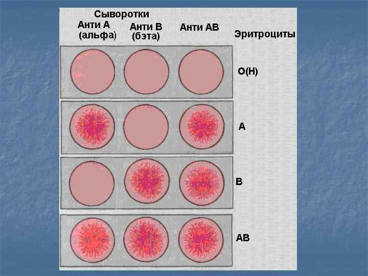 Группы крови по содержанию белков α + А - склеивание β + В - склеивание