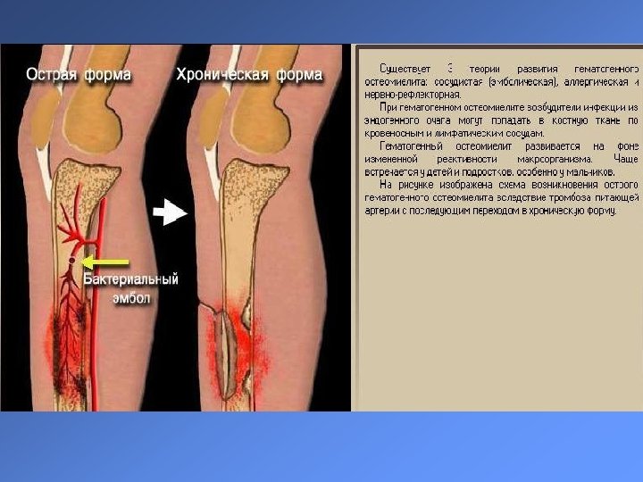 Теории патогенеза остеомиелита § Эмболическая § Аллергическая § Нервно-рефлекторная
