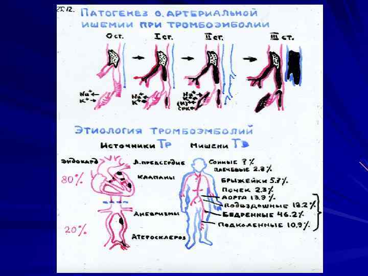Острые артериальные тромбозы Основной фактор в патогенезе Поражение сосудистой стенки (атероматоз) Повышение свёртываемости крови