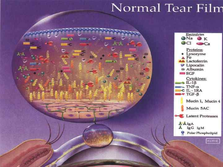 БИОХИМИЧЕСКИЙ СОСТАВ ПРЕРОГОВИЧНОЙ СЛЕЗНОЙ ПЛЕНКИ n ИММУНОЛОГИЧЕСКАЯ ЗАЩИТА n НЕСПЕЦИФИЧЕСКАЯ РЕЗИСТЕНТНОСТЬ n ФЕРМЕНТЫ n ПИТАТЕЛЬНЫЕ ВЕЩЕСТВА n АМИНОКИСЛОТЫ n ГОРМОНЫ