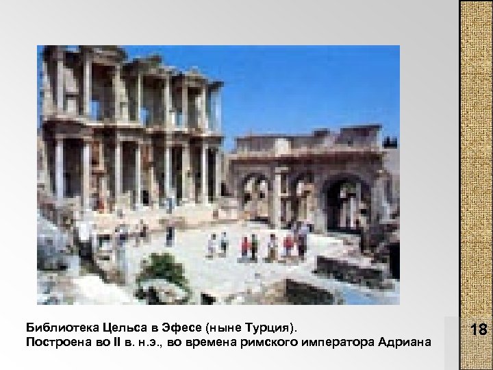 Библиотека Цельса в Эфесе (ныне Турция). Построена во II в. н. э. , во времена римского императора Адриана 18