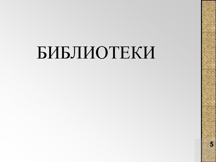 БИБЛИОТЕКИ РУСИ Шбиблиотека Ярослава Мудрого (1037 г. Шбиблиотека Соловецкого монастыря Шбиблиотека Троице-Сергиева монастыря Шбиблиотека Ивана Грозного ШПатриаршья библиотека (XV-XVII вв. ) 24
