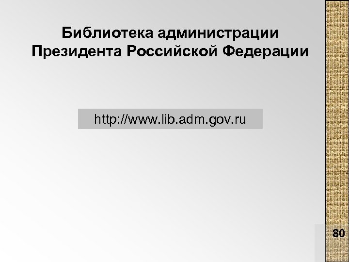 Библиотека администрации Президента Российской Федерации http: //www. lib. adm. gov. ru 80