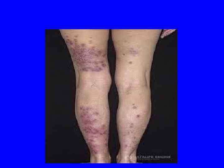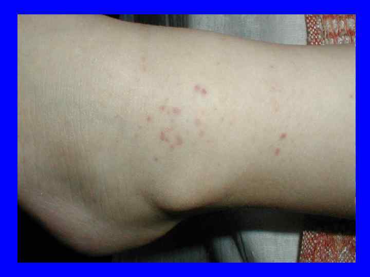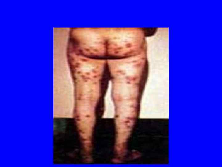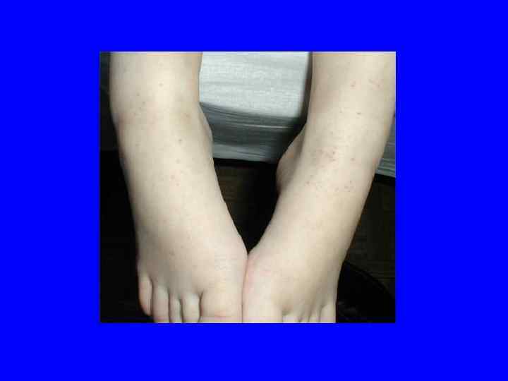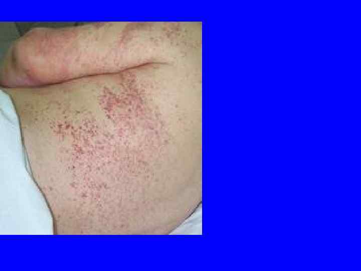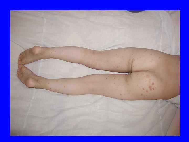 Васкулитно-пурпурный тип геморрагического синдрома 1. 2. 3. 4. 5. 6. 7. Сыпь папулезно-геморрагического характера Мономорфная Симметричная Разгибательные поверхности конечностей Сгущение в области суставов Оставляет пигментацию Рецидивирующий характер высыпаний