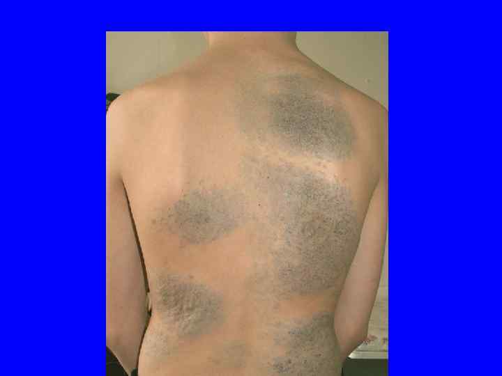 Синячково-петехиальный тип геморрагического синдрома 1. 2. 3. 4. 5. 6. 7. Петехии, экхимозы Полиморфная 3 П Полихромная Не симметричная Неадекватность силе воздействия Наклонность к кровоточивости Нет пигментации 4 Н