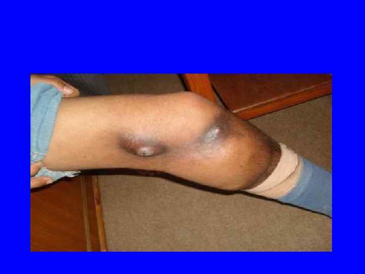 Гематомный тип геморрагического синдрома 1. Кровоточивость 2. Кровоизлияния гематомного типа ( подкожные, межмышечные гематомы ) 3. Гемартриты, гемартрозы ( гемофилия А)