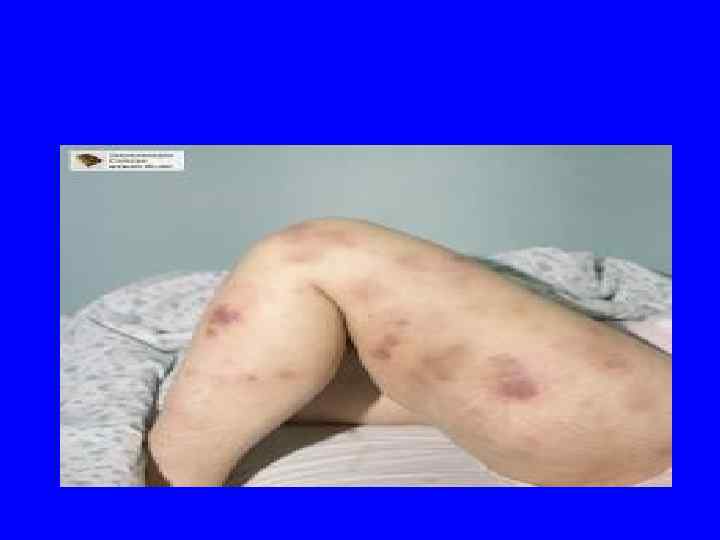 Синячково-гематомный тип геморрагического синдрома 1. Кровотечения 2. Необильный геморрагический синдром синячково-гематомного характера